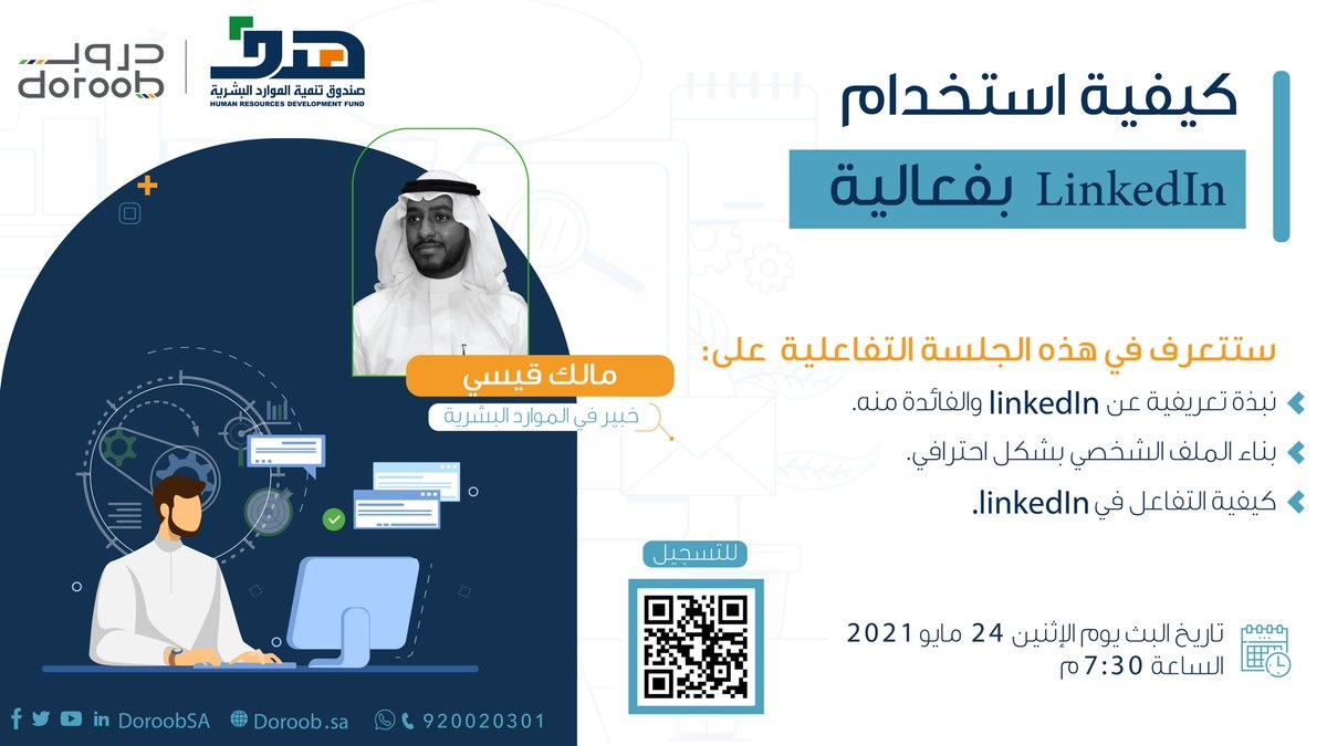 أعلنت منصة دروب تقديم دورة تدريبية مجانية تُقام عن بُعد لشرح استخدام منصة LinkedIn، وتقام الدورة يوم الإثنين بتاريخ 1442/10/12هـ الموافق 2021/05/24م 7:30 مساءً .