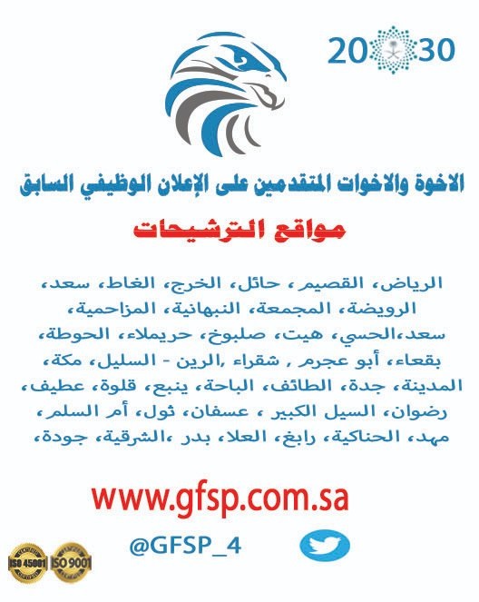 شركة صقور الخليج تعلن مواقع الترشيحات للوظائف الإدارية والأمنية