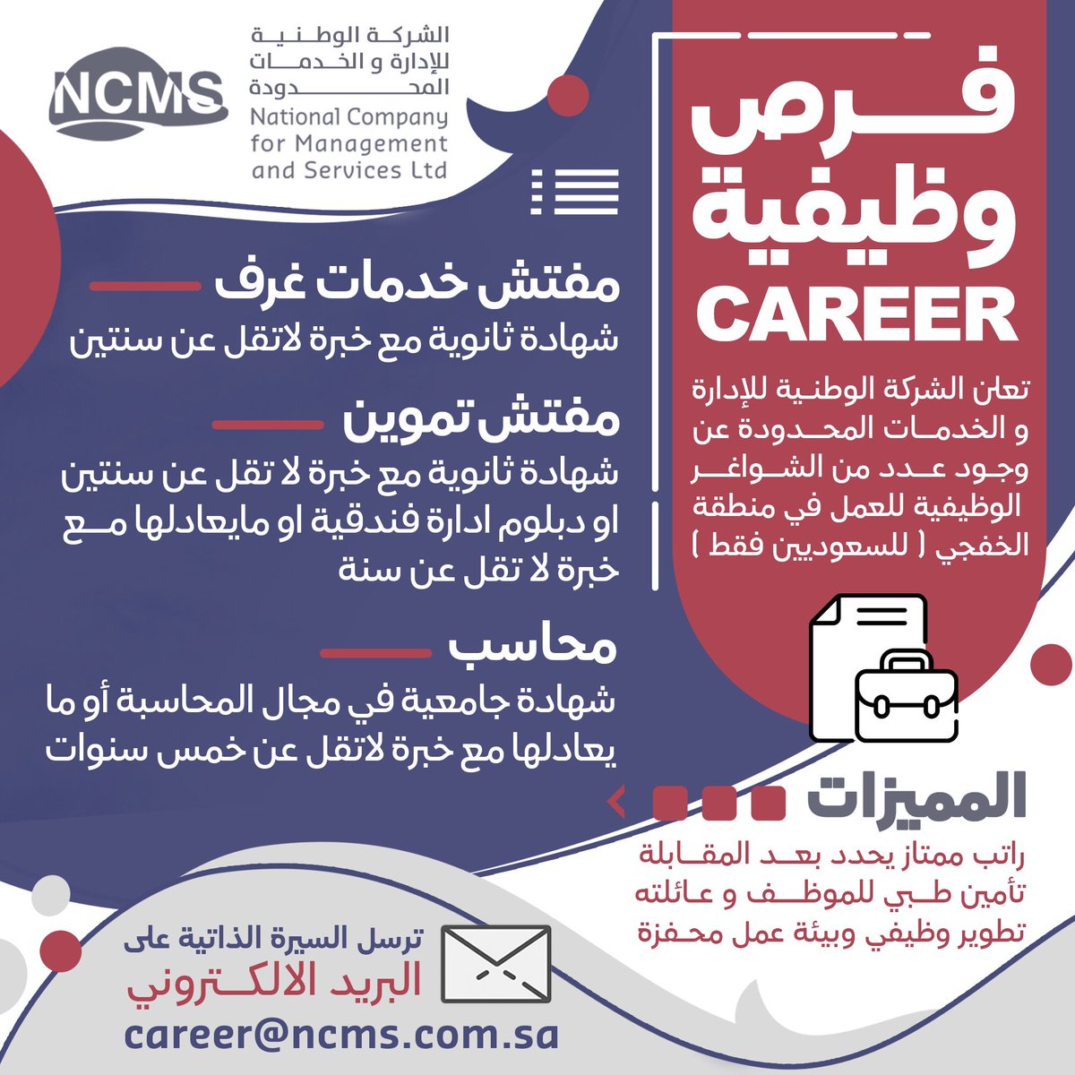 وظائف شاغرة بمدن متعددة لدى الشركة الوطنية للإدارة و الخدمات المحدودة