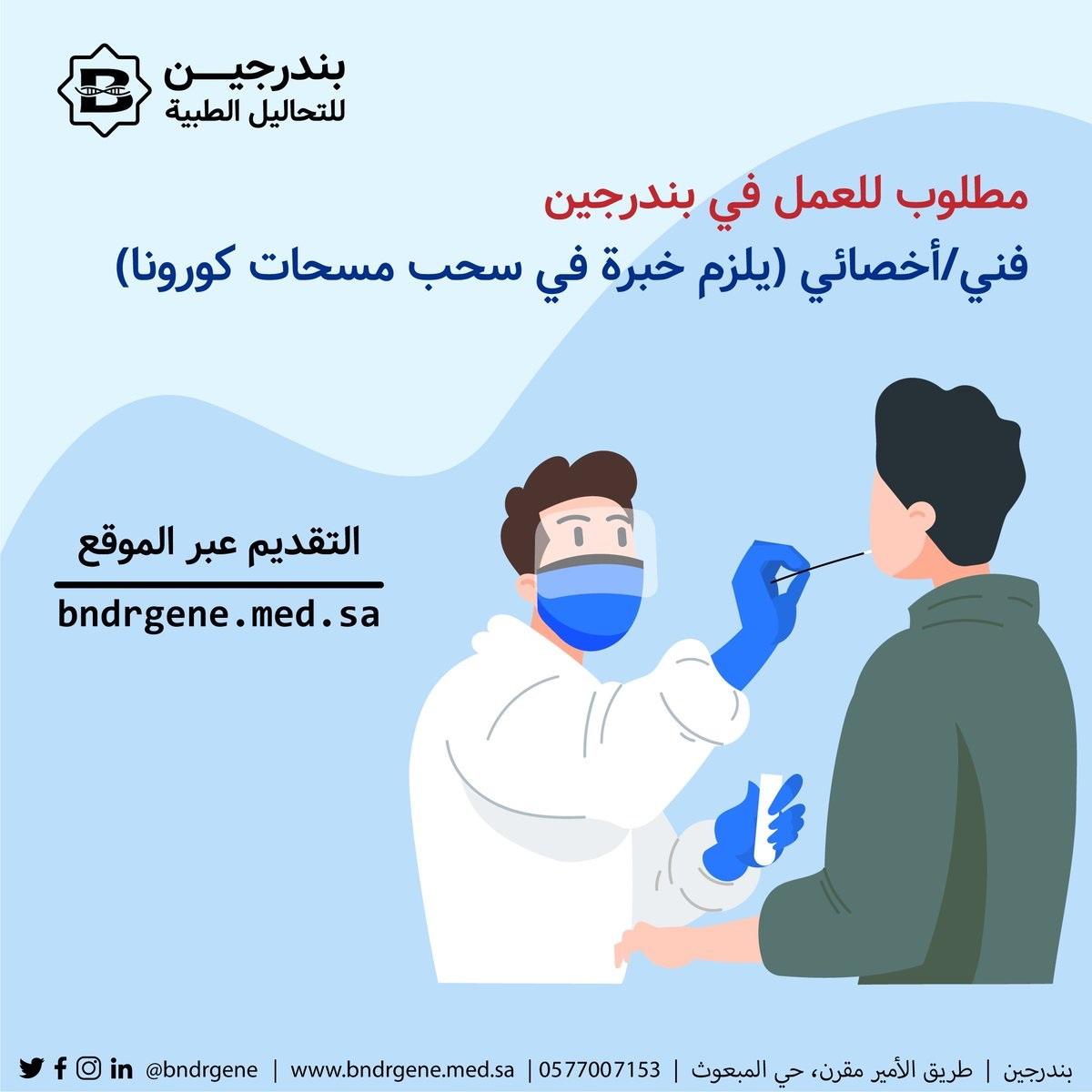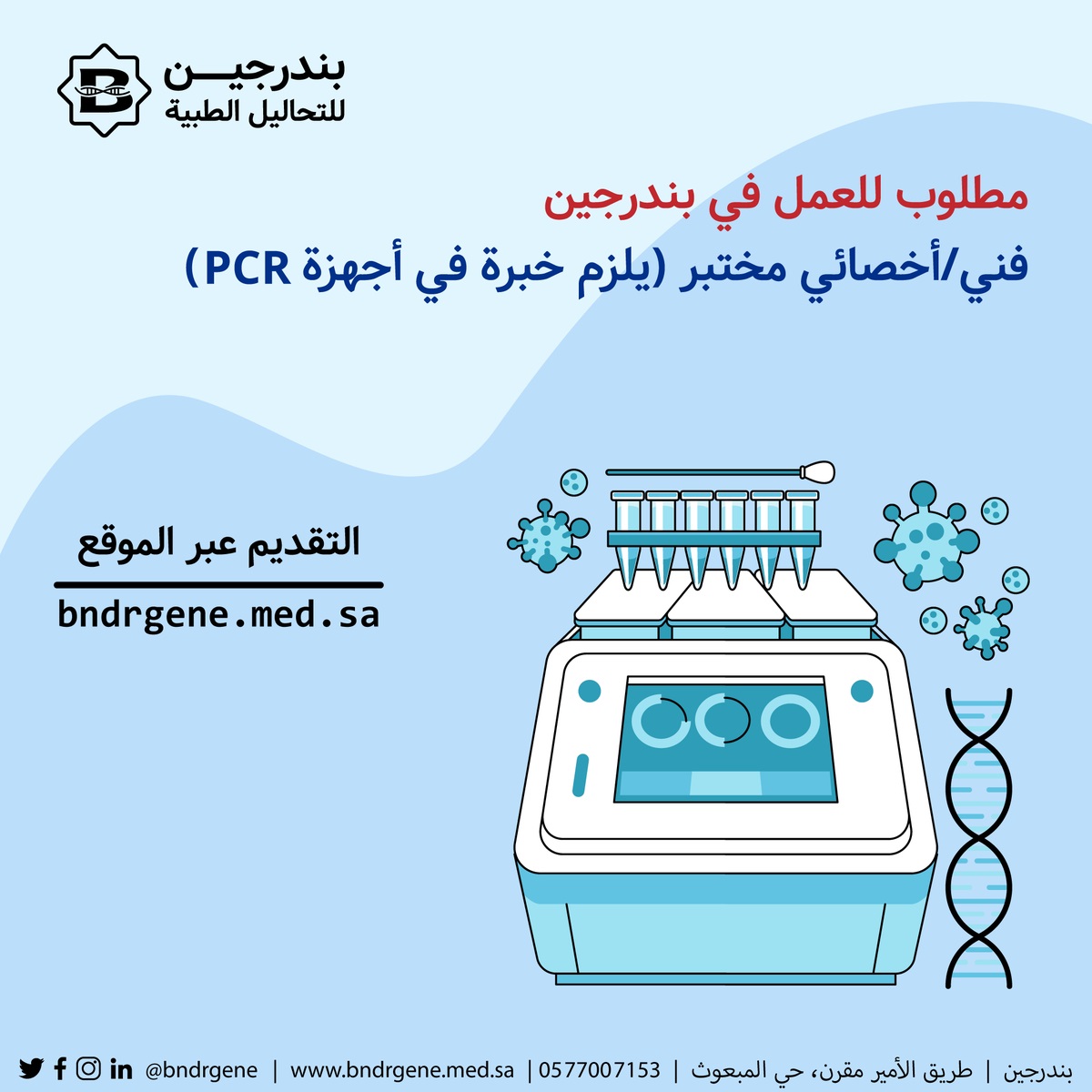 وظائف فنيين وأخصائيين لدى مركز بندرجين للتحاليل الطبية بالمدينة المنورة 1